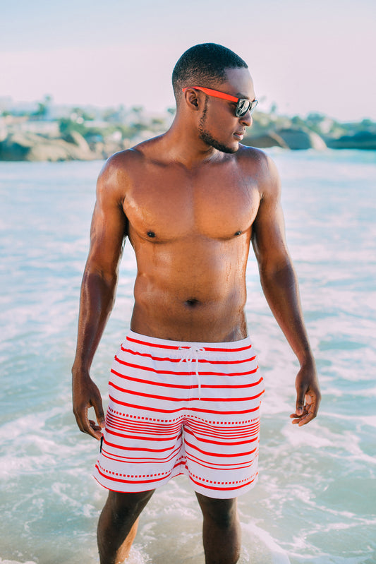 STYLE 600 ROT HERREN BOARDSHORTS STREIFEN